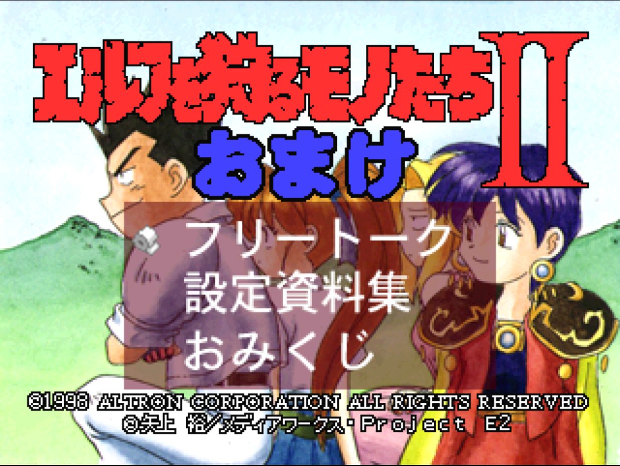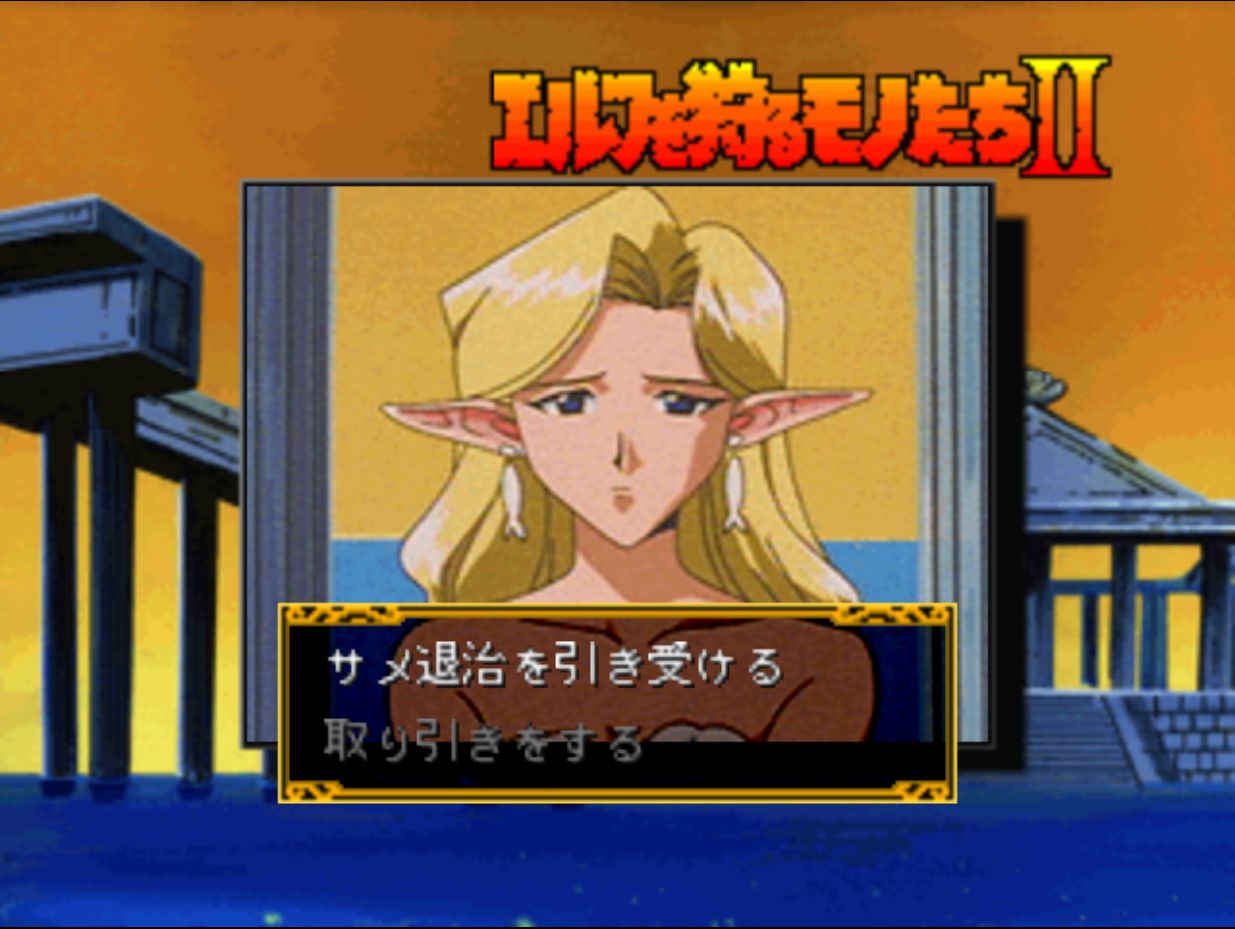 Elf o Karu Monotachi II (エルフを狩るモノたちⅡ) is a Interactive Movie/Visual Novel video game published by Altron released on August 13th, 1998 for the PlayStation.