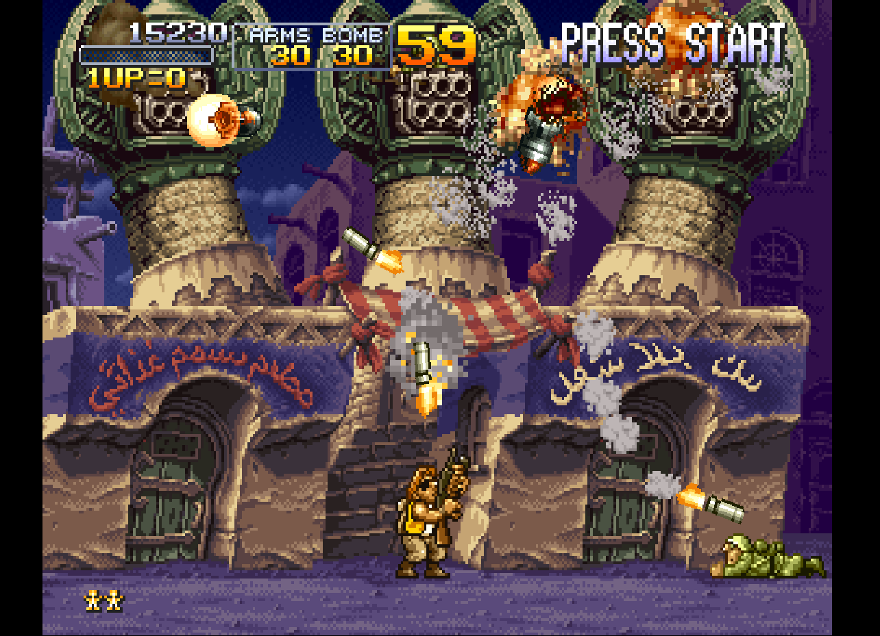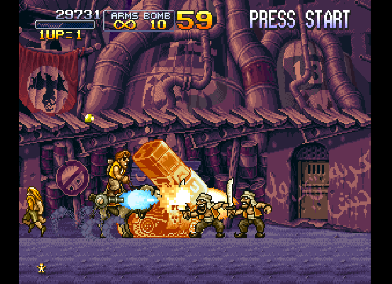 Metal Slug X: Super Vehicle-001 (メタルスラッグX SUPER VEHICLE-001) is a Run and gun video game published by SNK released on January 25th, 2001 for the PlayStation.