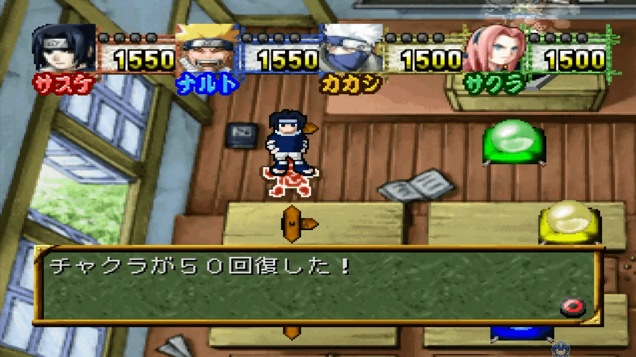 Naruto: Shinobi no Sato no Jintori Gassen (ナルト- 忍の里の陣取り合戦) is a Board Game video game published by Bandai, Dimps Corporation released on June 26th, 2003 for the PlayStation.
