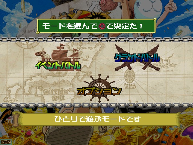 One Piece: Grand Battle! (From TV Animation: One Piece ~グランド・バトル!~) is a Fighting video game published by Bandai released on March 15th, 2001 for the PlayStation.
