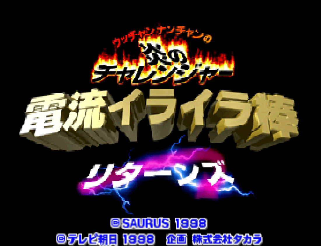 Utchan Nanchan no Honoo no Challenger - Denryuu Iraira-bou Returns (ウッチャンナンチャンの炎のチャレンジャー 電流イライラ棒 リターンズ") is a Action video game published by Saurus released on March 19th, 1998 for the PlayStation.