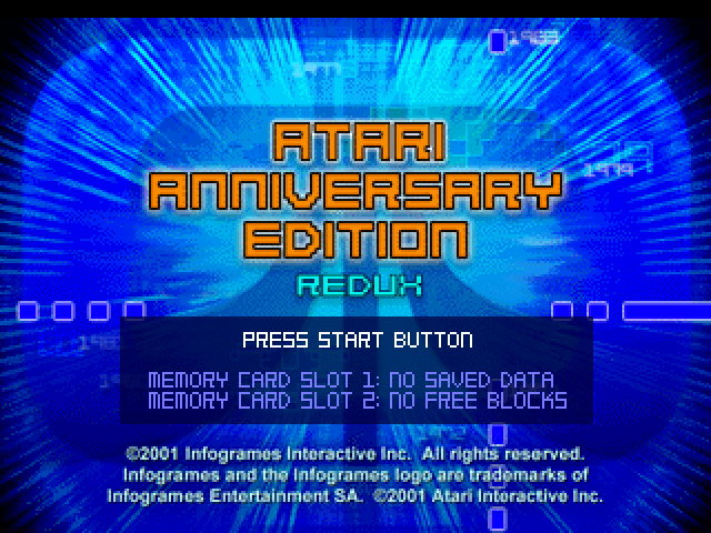 Atari Anniversary Edition Redux is a Compilation video game published by Digital Eclipse, Infogrames released on September 27th, 2002 for the Sony PlayStation (PSX).