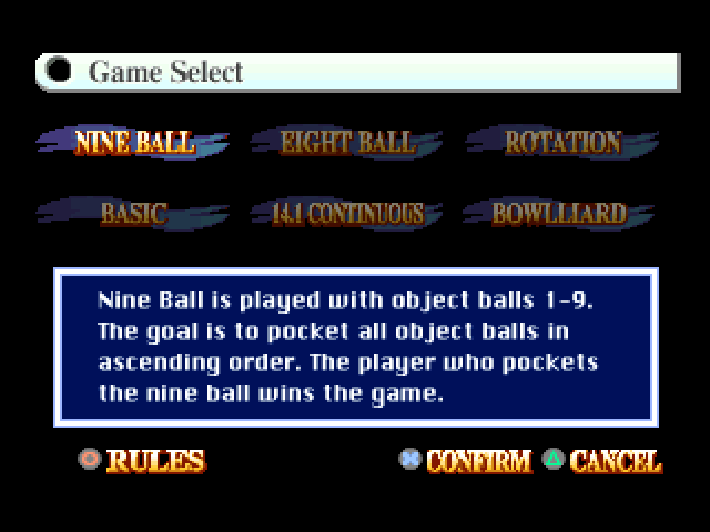Billiards is a Pool video game published by Agenda, Agetec released on May 14th, 2001 for the Sony PlayStation (PSX).