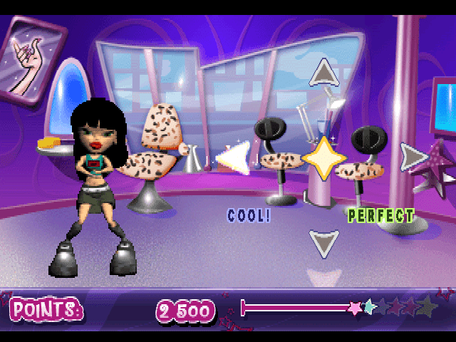 Bratz: Dress Up, Get Down and Be a Bratz Superstar! is a Rhythm video game published by DC Studios, Ubisoft released on March 12th, 2003 for the Sony PlayStation (PSX).