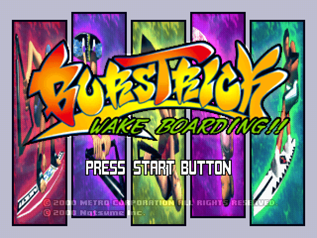 Burstrick: Wake Boarding!! is a Sports video game published by Natsume released on February 28th, 2001 for the Sony PlayStation (PSX).