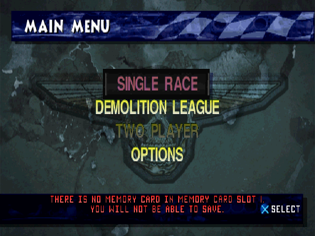 Demolition Racer is a Racing/Vehicular Combat video game published by Infogrames released on August 31st, 1999 for the Sony PlayStation (PSX).