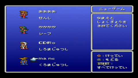 Final Fantasy (ファイナルファンタジー) is a RPG video game published by SquareSoft released on June 24th, 2009 for the PlayStation Network as PSOne Classic.