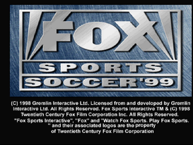 Fox Sports Soccer '99 is a Soccer video game published by Fox Interactive, Gremlin Interactive released on June 30th, 1998 for the Sony PlayStation (PSX).