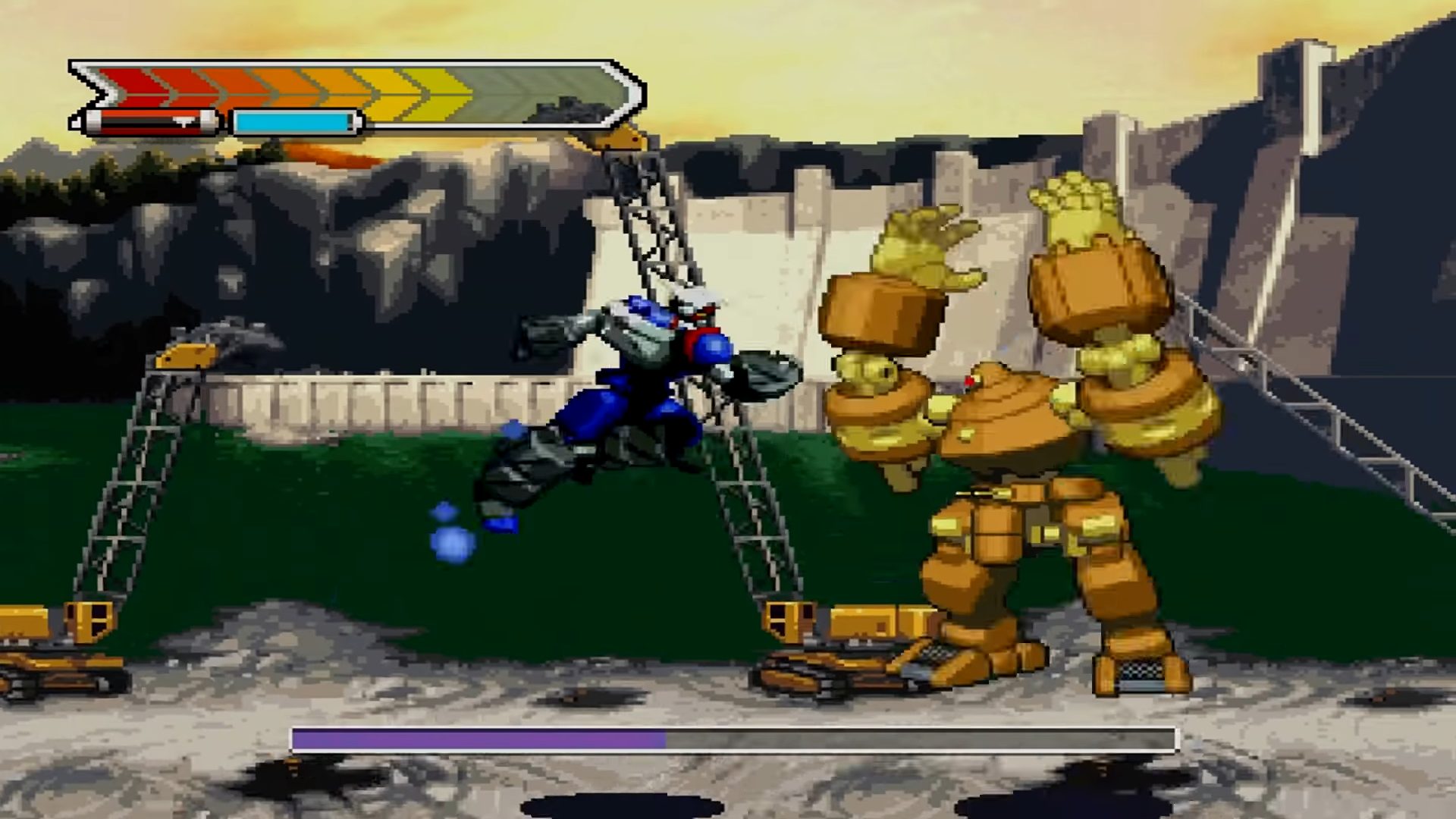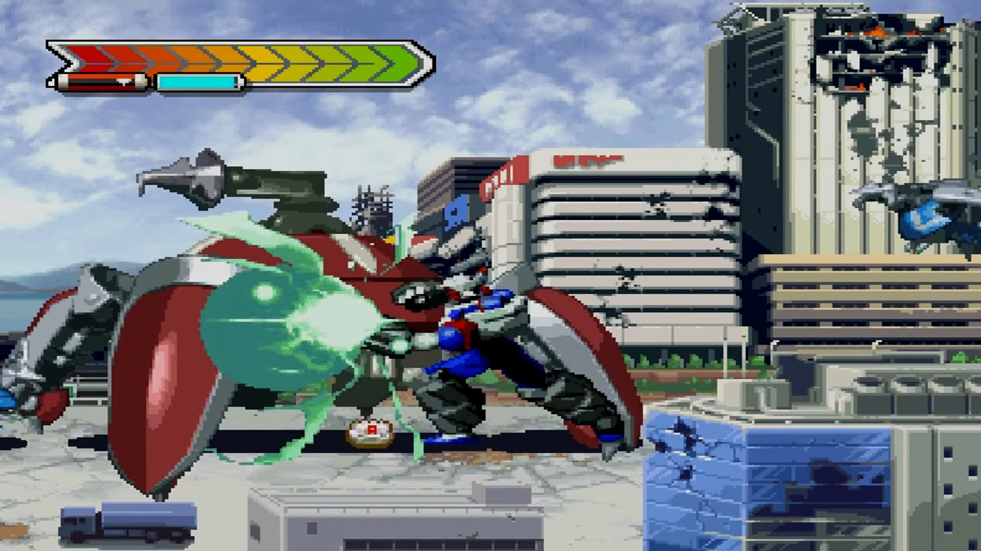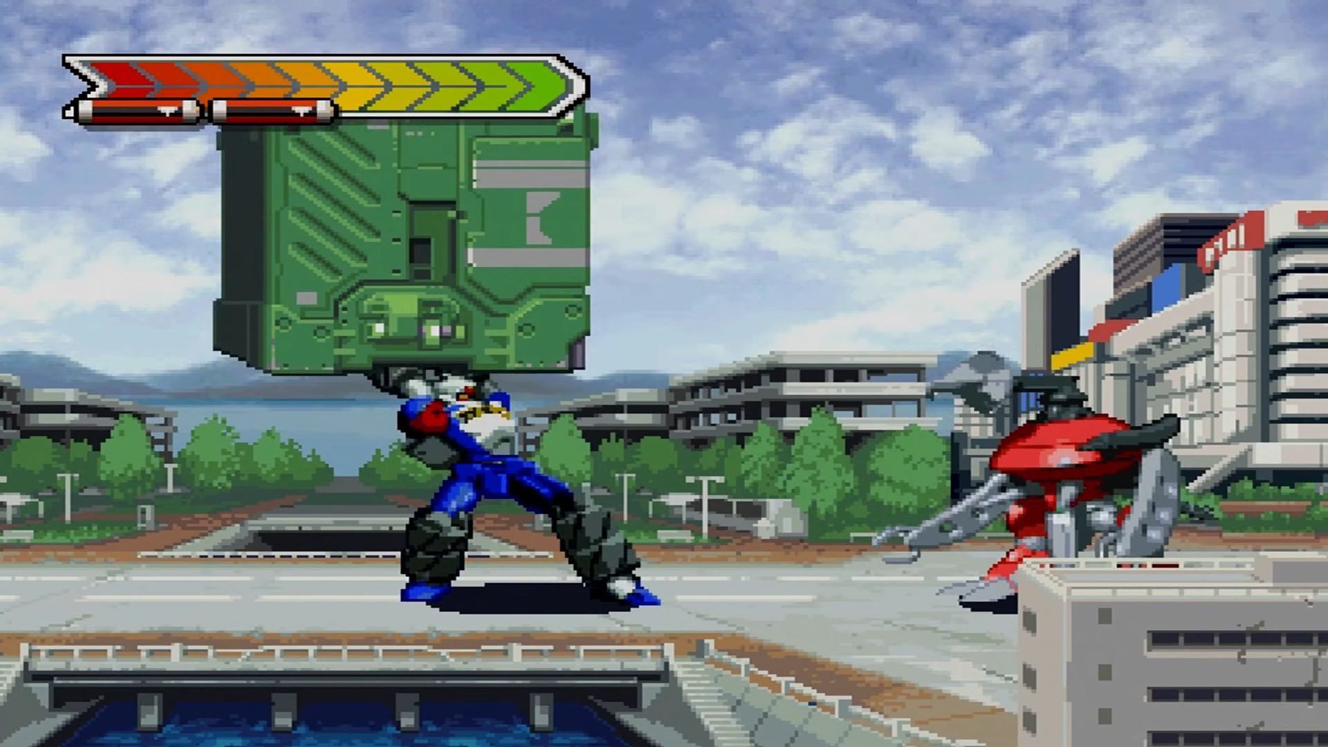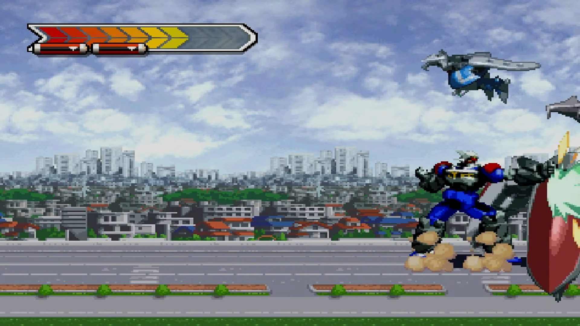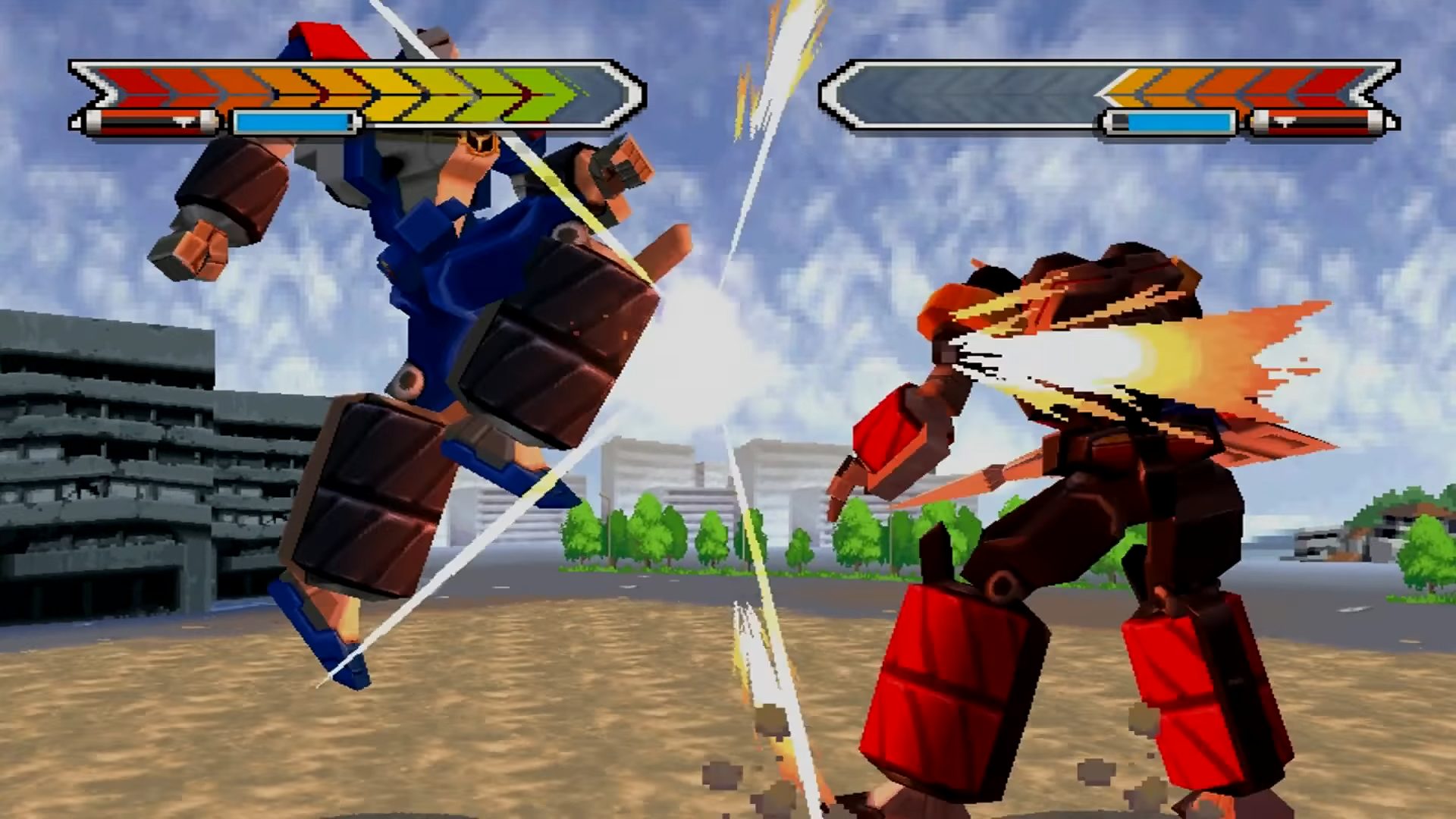 Gear Fighter Dendoh is a Action/Beat 'em up video game published by Bandai released on April 26th, 2001 for the Sony PlayStation (PSX).
