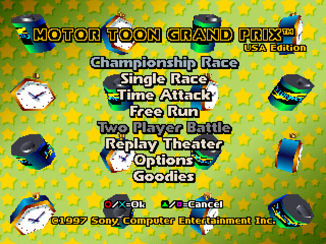 Motor Toon Grand Prix is a Racing video game published by SCEA released on October 31st, 1996 for the Sony PlayStation (PSX).