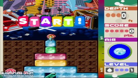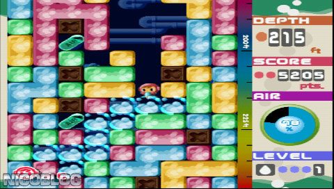 This is a very funny puzzle game you control Mr. Driller and the objective is to drill through blocks to get as deep as possible on the level, but also collecting oxygen pills to stay alive and being careful not to drill things that will fall into your head and crush you.