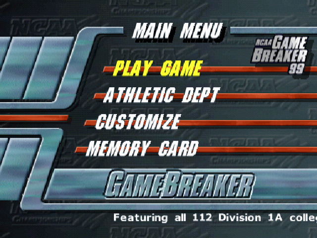 NCAA Gamebreaker '99 is a Football video game published by 989 Sports released on October 31st, 1998 for the Sony PlayStation (PSX).
