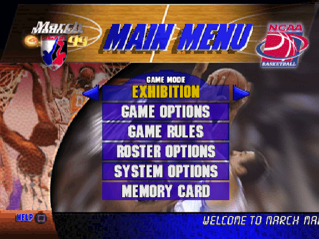 NCAA March Madness '99 is a Basketball video game published by EA Games released on November 30th, 1998 for the Sony PlayStation (PSX).