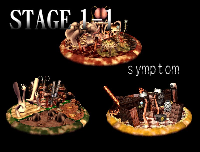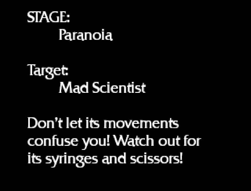 As far as the patch goes, before each level there's a screen offering some tips for the level - this translates that. There are also some voice clips in 3-2 where Screaming Mad George himself gives you feedback -- it turns out that he recorded English versions of these and included them on the disk, and I was able to swap the calls to the Japanese clips with calls to the English clips!
