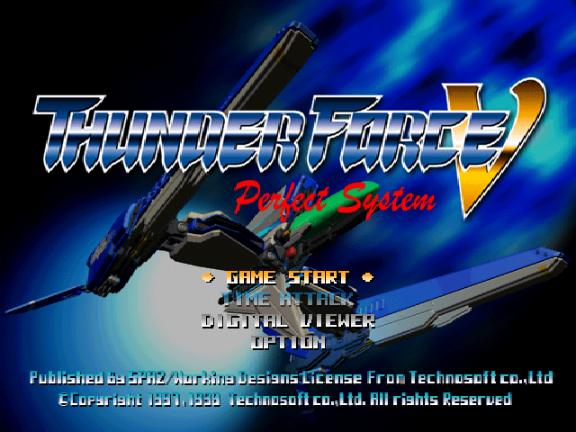 Thunder Force V: Perfect System is a Shoot 'Em Up video game published by Working Designs released on August 31st, 1998 for the Sony PlayStation (PSX).