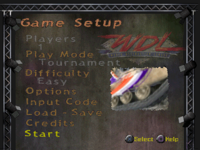 World Destruction League: Thunder Tanks is a Vehicular Combat video game published by 3DO released on September 9th, 2000 for the Sony PlayStation (PSX).
