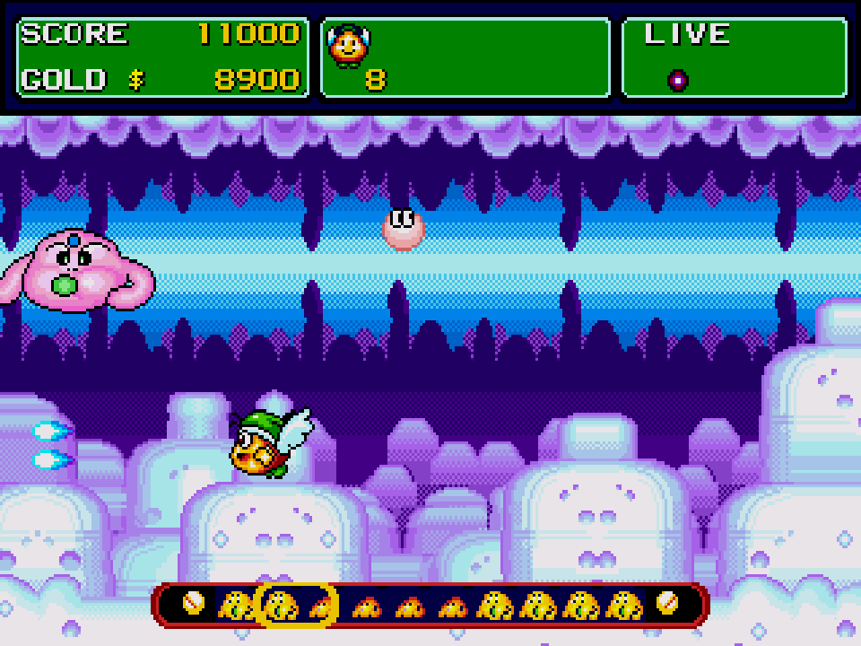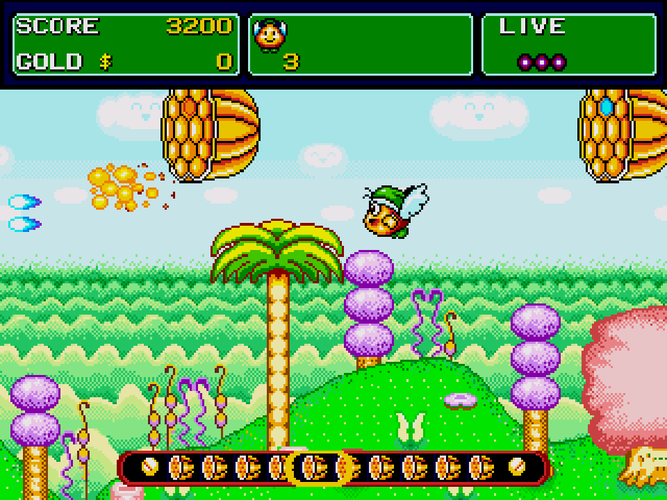 An unlicensed Chinese shmup similar to Fantasy Zone. Also known as "Mao Xian Xiao Zi".