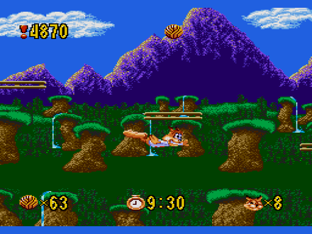 Bubsy in: Claws Encounters of the Furred Kind is a Platformer 2D video game published by Accolade released on 1993 for the SEGA Genesis.