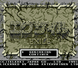 Exile (エグザイル〜時の狭間へ〜) is a Platformer 2D video game published by Micro Factory, Renovation released on 1991 for the SEGA Genesis.