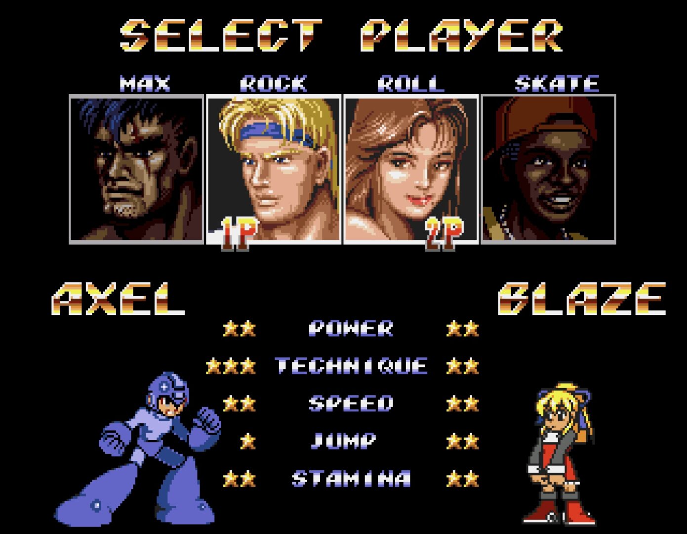 A sinple sprite hack of Streets of Rage 2 which replaces Axel and Blaze with Mega Man and Roll respectively.
