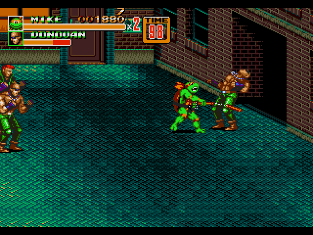Swaps Street of Rage 2 characters with anthropomorphic turtles in their teens that know martial arts.