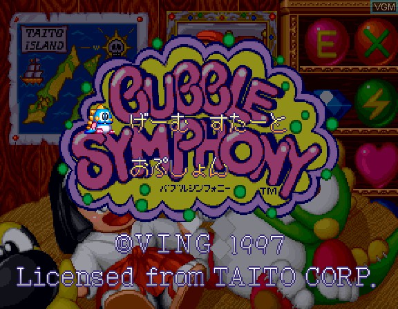 Bubble Symphony (バブル・シンフォニー) is a Action/Platformer 2D video game published by Taito Corporation released on 1997 for the SEGA Saturn.