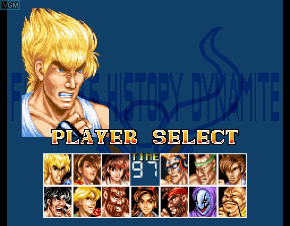 Fighter's History Dynamite (ファイターズ・ヒストリー・ダイナマイト) is a Fighting video game published by Data East released on 1994 for the SEGA Saturn.