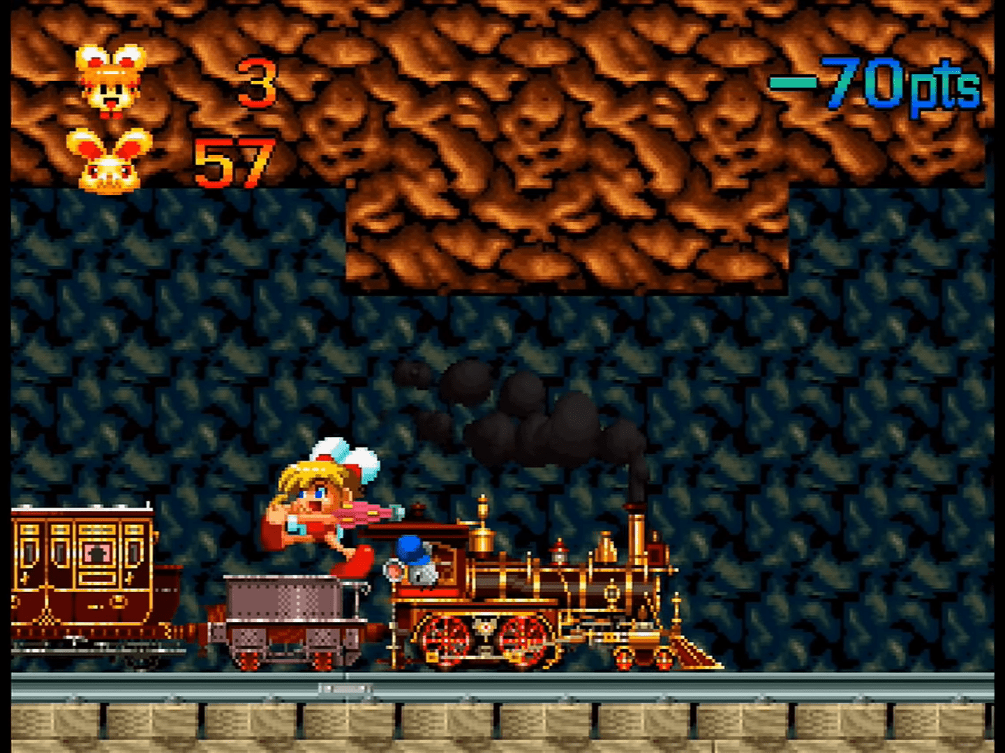 Keio Flying Squadron 2 is a Platformer 2D/Shoot 'Em Up video game published by JVC Digital Studios released on 1997 for the SEGA Saturn.