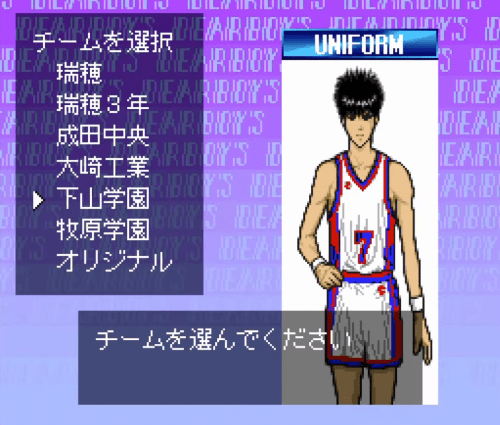 Dear Boys (ディア・ボーイズ) is a Basketball/Simulation/Sports video game published by Kan's, Yutaka released on October 28th, 1994 for the SNES.