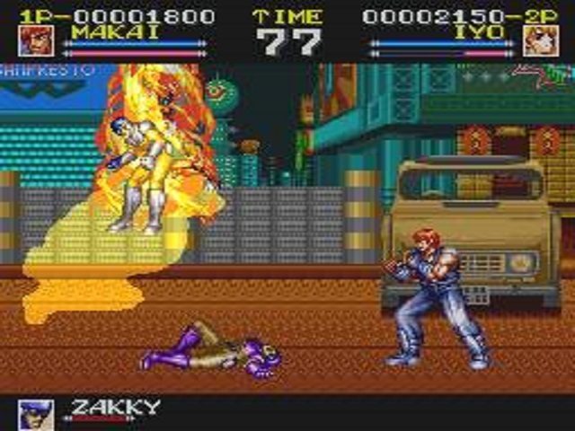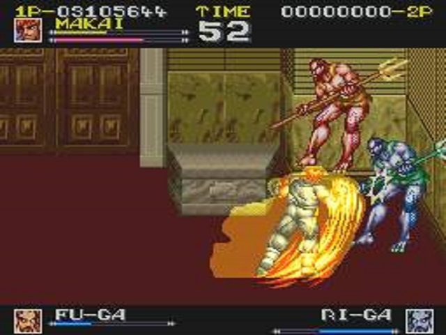 Being a Home port from Arcade to Super Famicom of course there is gonna be graphical and sound differences, but the major difference, aside from the Different Name, is the Playable Roster is Taken from 7 and Reduced down to 3 Leaving only Makai, Iyo, and Belva Playable. Overall its a Decent port but its easily the Weakest of the 3 Makai Games.