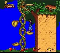 Snow White in Happily Ever After is a Action/Platformer 2D video game published by American Soft released on October 1st, 1994 for the SNES.