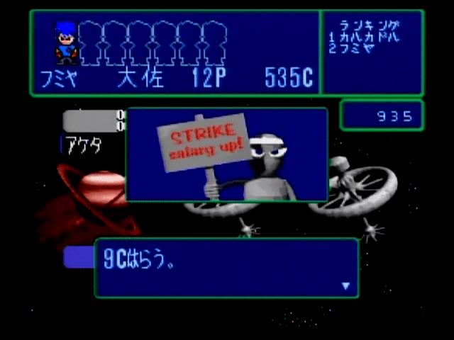 Sugoroku Ginga Senki (すごろく銀河戦記) is a Board Game video game published by Bottom Up released on December 19th, 1996 for the SNES.