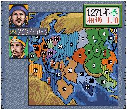 Super Aoki Ookami to Shiroki Mejika: Genchou Hishi (スーパー蒼き狼と白き牝鹿 元朝秘史) is a Strategy video game published by Koei released on March 25th, 1993 for the SNES.