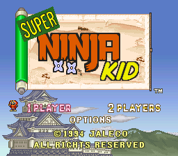 Super Ninja-kun is a Action/Platformer 2D video game published by Jaleco Entertainment released on August 5th, 1994 for the SNES.