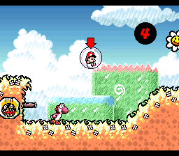 A romhack of Super Mario World 2: Yoshi's Island. this hack main features is removing the annoying crying SFX of Mario while replacing the sprite. It also make red coins red. And tweaks other sounds to be less annoying.