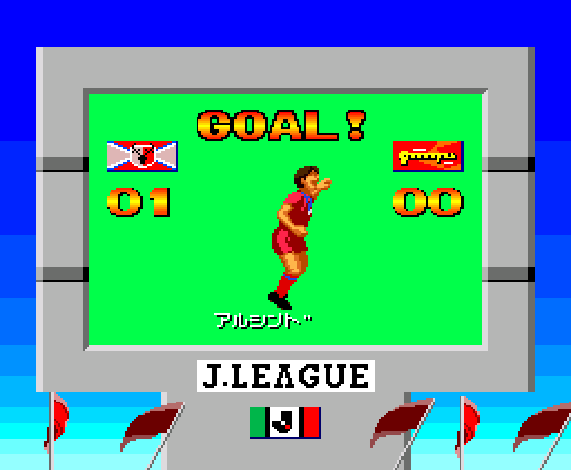 Formation Soccer: On J League (フォーメーションサッカーオンJリーグ) is a Soccer video game published by HUMAN Entertainment released on 1994 for the TurboGrafx-16.