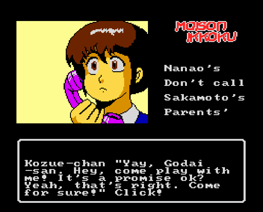 Maison Ikkoku (めぞん一刻) is a Adventure/Visual Novel video game published by Micro Cabin released on 1989 for the TurboGrafx-16.