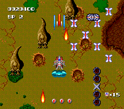 Terra Cresta II: Mandler no Gyakushuu (テラクレスタII マンドラーの逆襲) is a Shoot 'Em Up video game published by Nichibutsu released on 1992 for the TurboGrafx-16.