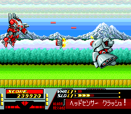 Veigues Tactical Gladiator (ヴェイグス) is a Shoot 'Em Up video game published by NEC, Victor Interactive Software released on 1990 for the TurboGrafx-16.