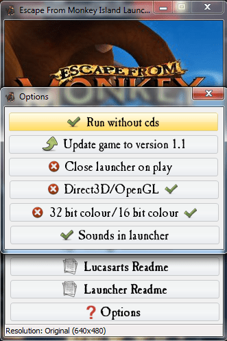 Note: If the launcher crashes while saving don't use it. Use monkey4.exe to play! And change compatibility mode to windows 95 and enable run as admin.