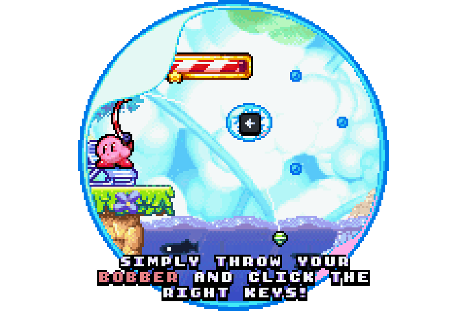 Kirby fishing game. Collect fish and be the kirbo,